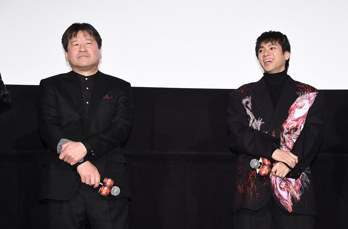 山田さんは「お客さんがたくさん入ってる劇場を見られる、こんなに幸せなことはない。本当にありがたいです。そんな作品の主演であれることを誇りに思います。観終わった今、みなさんの心にモヤモヤを与えているのはスズキタゴサクかもしれませんが…この作品を楽しんでいただけたら嬉しいです!」と笑顔で語った。永井監督も「この映画は、愛知県が生んでくれたこのイケメンと、不気味なおじさんと、中日ドラゴンズさん、そして名古屋のみなさんのおかげです!」と“名古屋愛”たっぷりに感謝を述べると、会場から大拍手が沸き起こった。さらに、スズキタゴサクが劇中で被っている中日ドラゴンズの帽子が「実際に選手の帽子を製作しているところで、映画用に作っていただいたもの」と明かし、地元との深いつながりをアピールした。