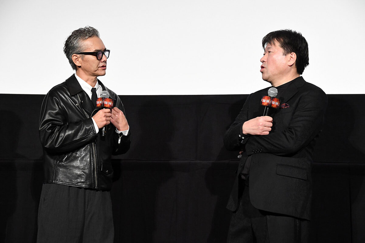 渡部さんは、「エンターテインメントの一歩先を進んだ作品ってどういうものかなと考えていたけど、人の業みたいなものが描かれているのではないかと思って…」と語った後、言葉を詰まらせ、突如涙ぐむ一幕も。佐藤さんを指して「付き合いが長いんですよ」と言いながら声を震わせる渡部さんに対し、佐藤さんが肩を抱きながら、「渡部さんはスターで、主演をやられて僕が脇で支えることが多かったんです。山田と僕がこの作品を背負っている自覚もあるけど、この映画が決まった時に、渡部さんが嬉しそうに『お前を支えられる側に回れて嬉しい、俺出るよ』って電話してきてくれたんです」と、渡部さんとの強い絆が感じられるエピソードを披露。渡部さんは「スズキタゴサクという役は二朗にしかできないと思ったし、大切な作品に僕も出させていただいて、感慨深いものがありましたね」と胸の内を明かしながら、ハンカチで涙をぬぐった。そんな渡部さんに、冗談めかしながらも優しく「いきなりいきなり泣き出すからびっくりしちゃった!」と語り掛ける佐藤さんに、会場はあたたかい拍手が包まれていた。