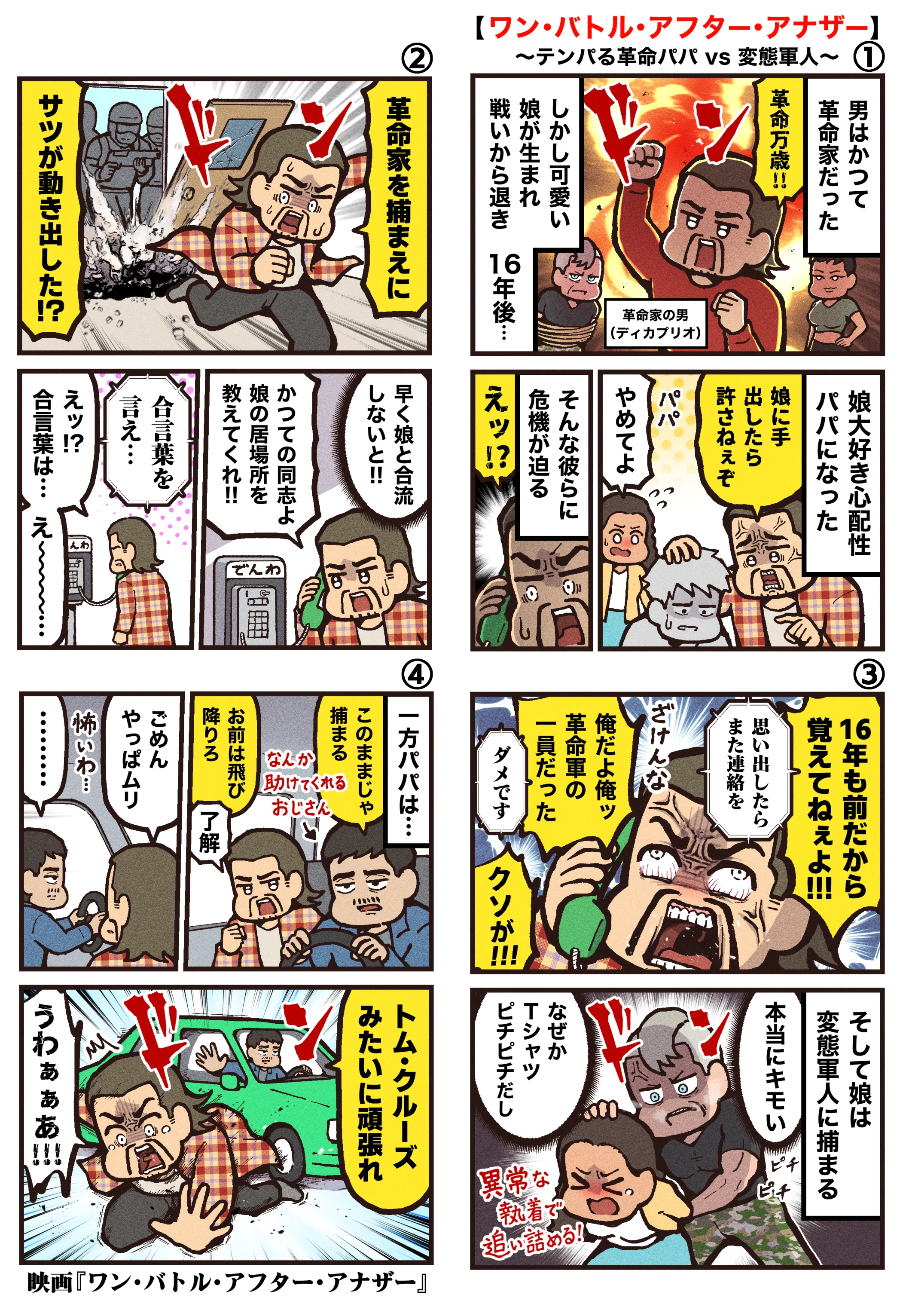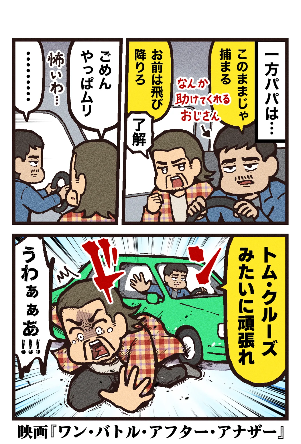 ディカプリオのアクション テンパる革命パパ、車から必死のダイブ!